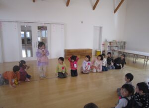 ↓冬休み前につくった指人形劇場は、今日お正月バージョンに進化しましたよ。