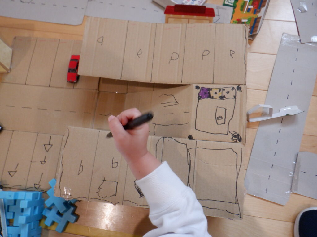 P 11月 25, 2025 最終更新日時 : 11月 25, 2025 大館幼稚園 たんぽぽの子たちは、ミニカーで遊ぶのが大好きで 毎日道路を組み立て、街づくりをしています。 保育者が段ボールで立体駐車場を作ると 運転する人を案内するための矢印、車どめをかき、 どんどん子どもたちの手が加わり、素敵な立体駐車場に変身してきています。 今日は、「先生、Pかけるよ、ほら!」 と話し、パーキングのPをたくさんかいていました。 一目で駐車場が分かりますね! Follow me!