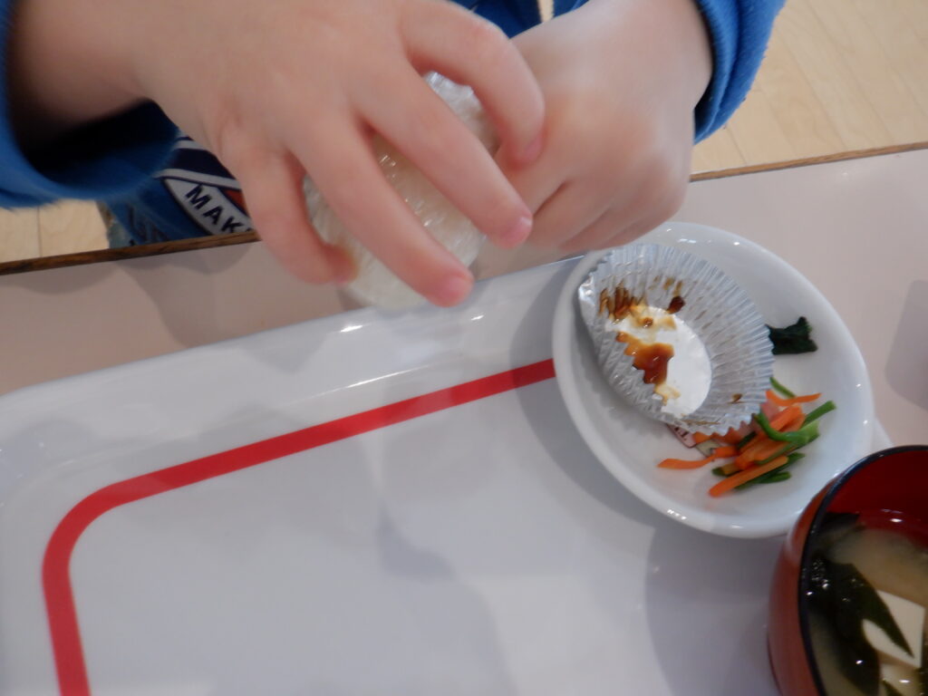 そして、お昼は、今年初のおにぎり給食でした🍙