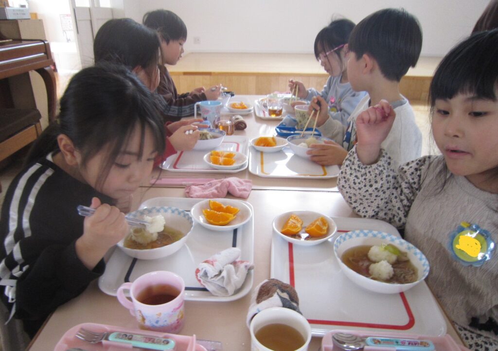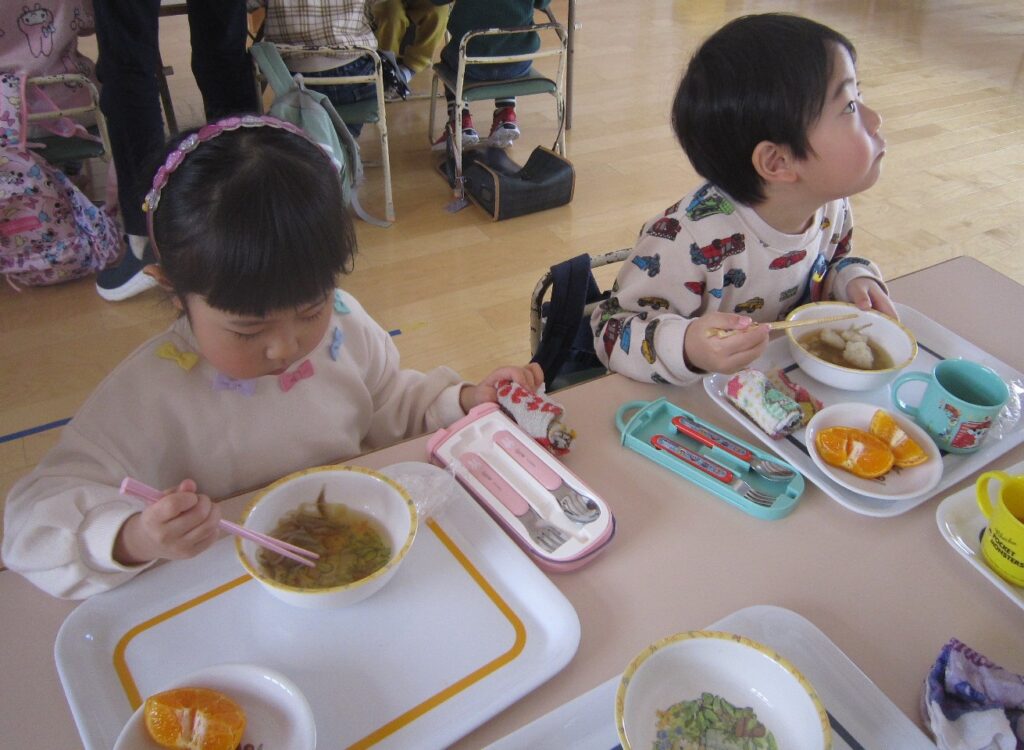 「だまこ」おいしいよ 2月 18, 2026 最終更新日時 : 2月 18, 2026 大館幼稚園 今日のおにぎり給食は「だまこ」を作って食べましたよ おにぎりよりも小さいご飯をぎゅっぎゅとしっかり握って・・・ 鶏肉だしのスープで食べました! 鶏だしスープの具は、舞茸、ゴボウ、ねぎ糸こんにゃくです スープに入っているので食べやすくおかわりをする子どもがたくさんでした 「だまこだいすき」「おいしい」の声がたくさん聞こえてきましたよ Follow me!